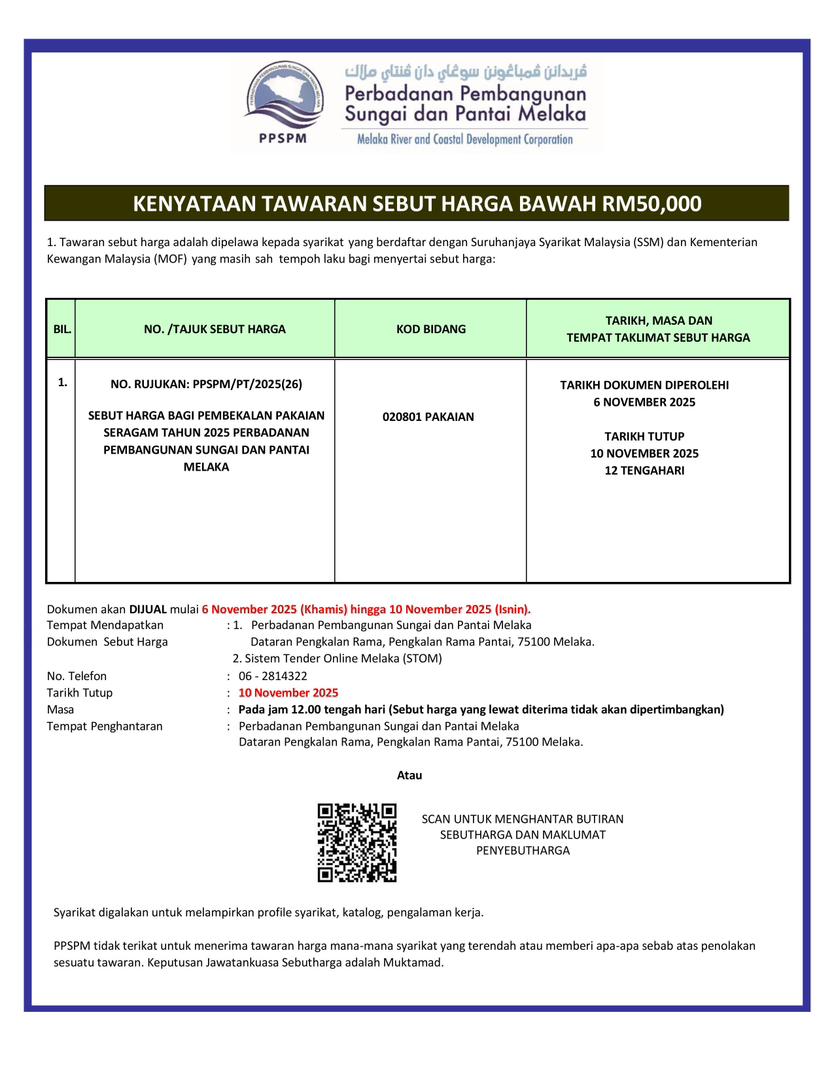 Tarikh Tutup :*10 November 2025 (Jam 12.00 Tengahari)*